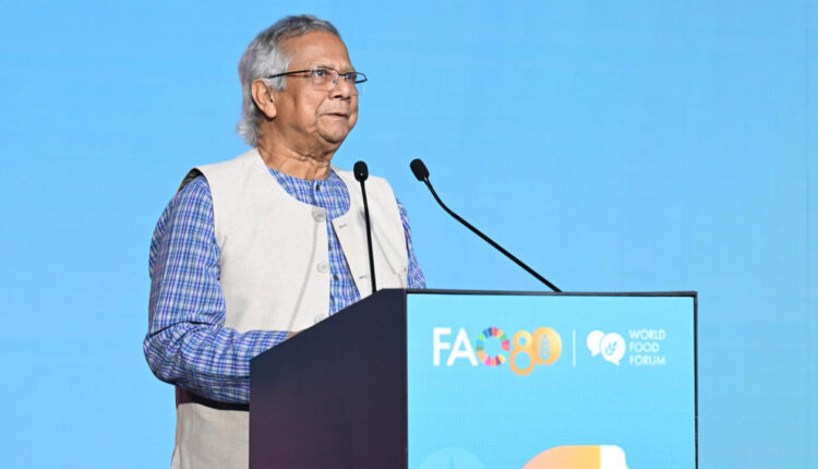 অধ্যাপক ইউনূস বলেন, ‘২০২৪ সালে ৬৭৩ মিলিয়ন মানুষ ক্ষুধার্ত ছিল, অথচ আমরা যথেষ্ট খাদ্য উৎপাদন করেছি। এটি উৎপাদনের ব্যর্থতা নয়— এটি অর্থনৈতিক ব্যবস্থার ব্যর্থতা, নৈতিক ব্যর্থতা।’