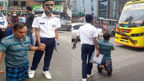 রবিবার এক এসএসসি পরীক্ষার্থীর হাত ধরে রাস্তায় দাঁড়িয়ে থাকার একটি ছবি সামাজিক যোগাযোগ মাধ্যমে ভাইরাল হয়। সেই ছবিতে দেখা যায়, পরীক্ষার প্রবেশপত্রসহ প্রয়োজনীয় কাগজপত্র এক হাতে, অন্য হাতে একজন শারীরিকভাবে প্রতিবন্ধী বয়স্ক মানুষের হাত ধরে রাস্তায় দাঁড়িয়ে আছেন একজন পরীক্ষার্থী। দুই পায়ের সমস্যার কারণে হাঁটুতে ভর করে ছেলেটির হাত শক্ত করে ধরে হাঁটছেন তিনি। ছবিগুলো ঢাকা ইসলামিয়া চক্ষু হাসপাতাল, বাড্ডার সামনে থেকে তোলা।
