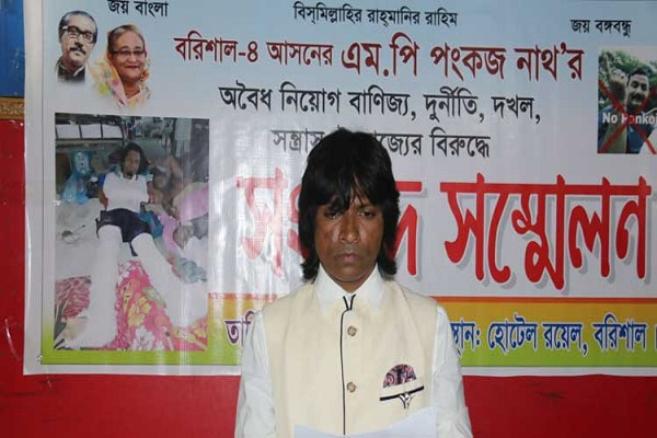 সোমবার বেলা ১১টার দিকে বরিশাল নগরীর সদর রোডের রয়েল রেস্তোরাঁয় এ সংবাদ সম্মেলন করেন মেহেন্দিগঞ্জ উপজেলার কাজিরহাট থানা আওয়ামী লীগের সহ-প্রচার ও প্রকাশনা বিষয়ক সম্পাদক সঞ্জয় চন্দ্র। সংবাদ সম্মেলনে পংকজ দেবনাথের বিরুদ্ধে দুর্নীতি, জমি দখল, সন্ত্রাস ও নৈরাজ্যের অভিযোগ তোলা হয়।