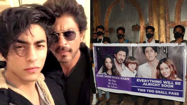 শাহরুখ খান, গৌরি খান, আরিয়ান খান, সুহানা খান এবং আবরাম খানের ছবির পাশাপাশি ‘খুব শিগগির সব ঠিক হয়ে যাবে’ লেখা প্ল্যাকাডও ছিল তাদের হাতে।