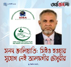 আকিজ তাকাফুল লাইফ ইন্স্যুরেন্সের সাবেক এডিশনাল এমডি আলমগীর চৌধুরীর ‘সিইও’ হওয়ার আর কোন সুযোগ নেই বলে জানিয়েছে বীমা উন্নয়ন ও নিয়ন্ত্রণ কর্তৃপক্ষ (আইডিআরএ)। জালিয়াতি ও প্রতারণার মাধ্যমে শিক্ষা সনদ সংগ্রহের প্রমাণ মেলায়, আকিজের সাবেক ভারপ্রাপ্ত সিইও আলমগীর চৌধুরীর পুনঃবিবেচনার আবেদন না- মঞ্জুর করে কর্তৃপক্ষ। গত ১৯ আগস্ট আইডিআরএর পরিচালক (উপসচিব) মোহাঃ আব্দুল মজিদ স্বাক্ষরিত চিঠিতে শিক্ষা সনদ ও অন্যান্য বিষয়ে ১৫ টি অসঙ্গতি চিহ্নিত করে এ সংক্রান্ত চিঠি ইস্যু করে।