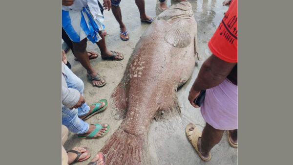 শনিবার সকালে দ্বীপে এই বিশাল আকৃতির মাছটি ধরা পড়ে। মাছটির আনুমানিক ওজন ১৫০ হবে বলে ধারনা করা হচ্ছে।